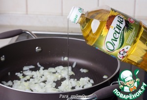 1. Лук очистить и мелко порезать. Обжарить лук в двух ложках масла в течении пары минут.