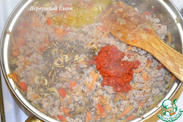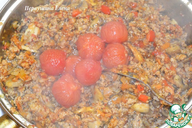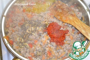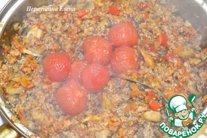 добавить помидоры (целиком, т. к. при перемешивании они и так измельчатся), томатную пасту