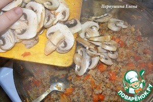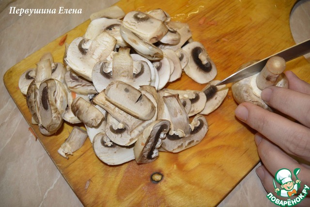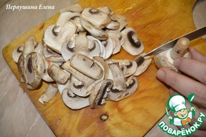 Шампиньоны нарезать произвольно.