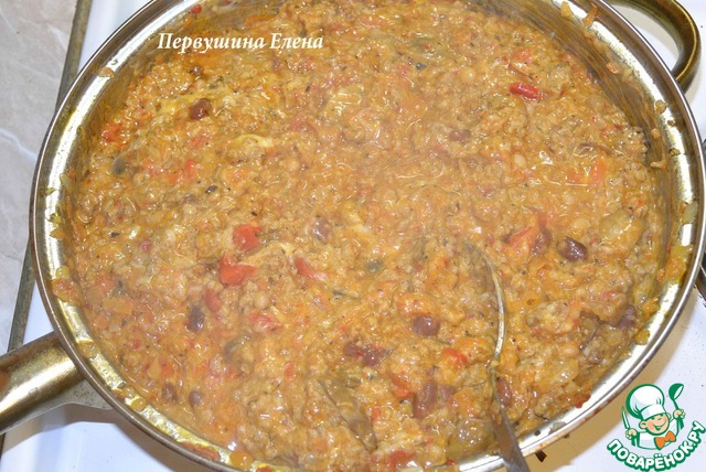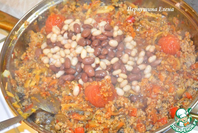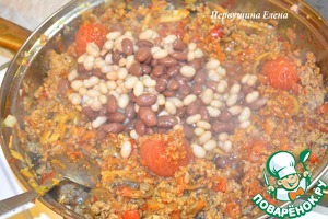 и фасоль. Довести до кипения, уменьшить огонь и тушить минут 5.