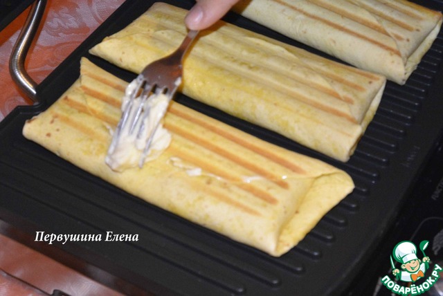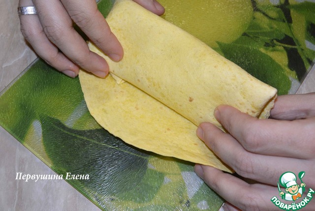 Аккуратно свернуть кончик лепешки,
