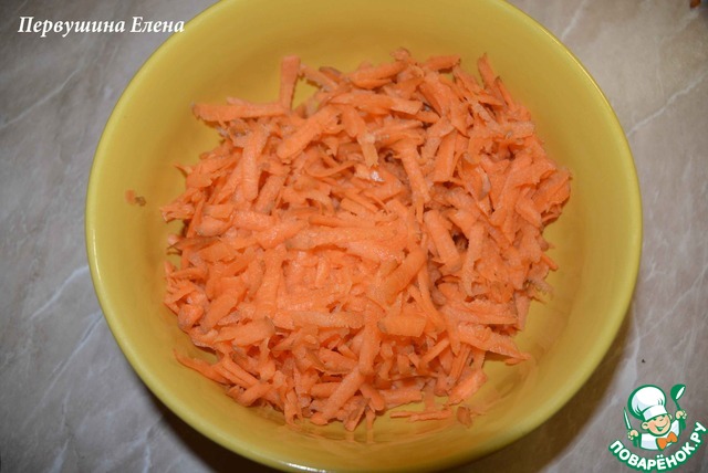 Морковь натереть на крупной терке.