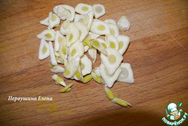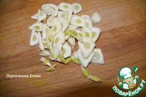 Чеснок нарезать тонкими колечками.