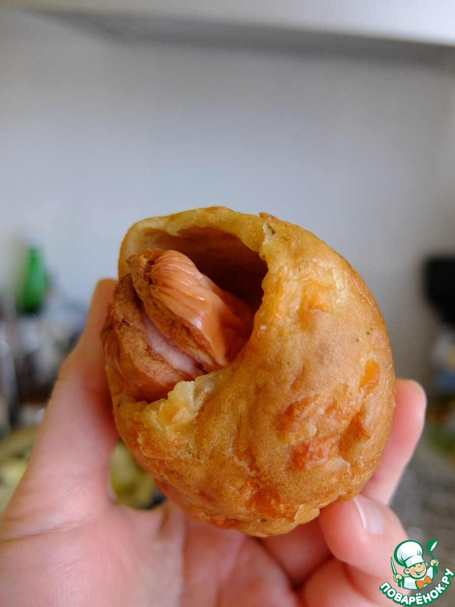 Тесто густое, поэтому сосиски хорошо держатся) -
