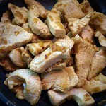 По прошествии указанного времени достать курицу из холодильника и дать ей немного постоять при комнатной температуре. При необходимости излишек маринада слить. В кастрюле смешать 2 литра воды с 1 ст. л. растительного масла, поставить на большой огонь и довести до кипения. Когда вода закипит, снизить огонь до среднего. Забросить кусочки курицы и в течение 1 минуты непрерывно мешать. Затем достать курицу из воды, дать стечь. Снаружи курица должна быть белого цвета, а внутри - оставаться немного сырой. Вы можете использовать курицу незамедлительно, а можете поставить в холодильник и приготовить немного позднее. Ее "нежность" не пропадет.