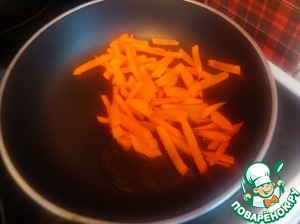 • Тем временем обжариваем нарезанную морковь (слегка)