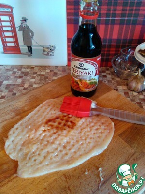 • Смазать с двух сторон соусом "Терияки" от Киккоман (уйдёт примерно 1/2 ст. л)