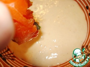 Обмакивайте кусочки рыбки хорошенько в тесто и обжаривайте в разогретом подсолнечном масле.