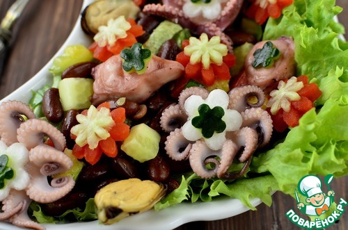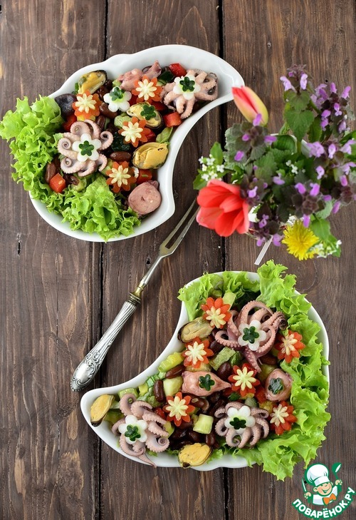 Салат с фасолью и морепродуктами "Первые цветы"