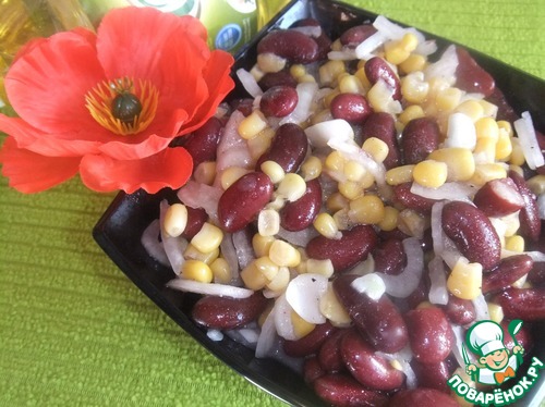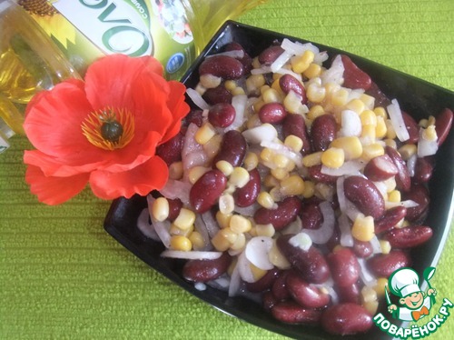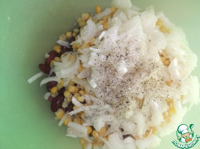 Из кукурузы и фасоли сливаем жидкость
