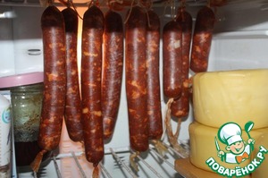 [+5]За неимением "no-frost", колбаса вялилась на балконе. Десять суток оказалось достаточно - усушка примерно 30%.