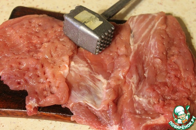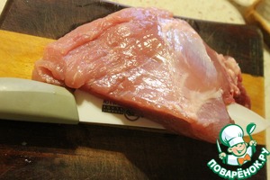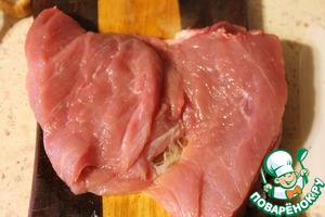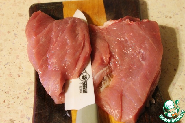 У меня небольшой кусочек свинины. Разрезать его пополам, не дорезая до конца.