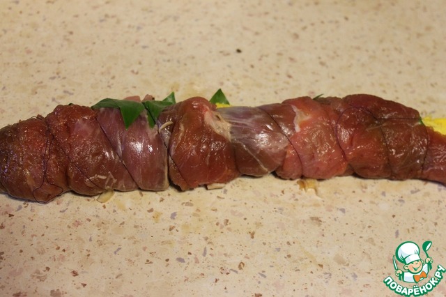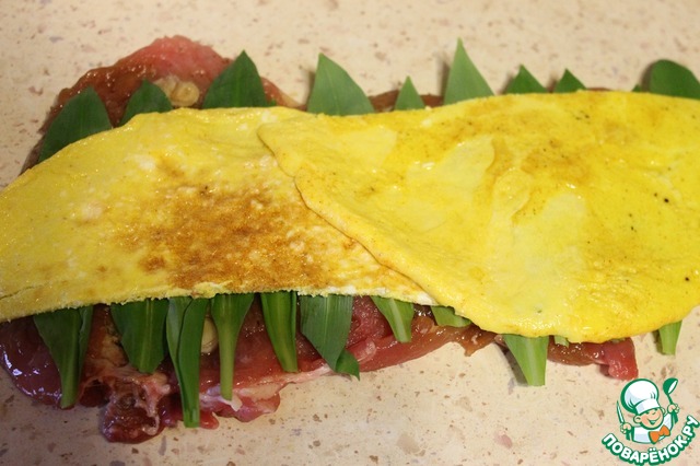 Рецепт «Свиной рулет с омлетом и черемшой»: