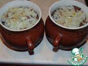 Томатную пасту развести в одном стакане кипяченой воды и залить овощи. в каждый горшок по половине стакана. Горшочки закрыть крышками и поставить в духовку на медленный огонь примерно на 40 минут.