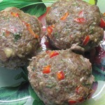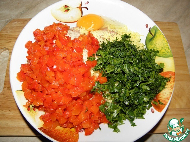 Затем к ним добавить перец, измельченный чеснок, мелко нарезанную зелень и яйцо. Посолить, поперчить по вкусу, и все хорошо перемешать.