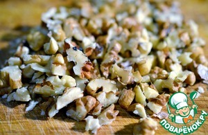 Грецкие орехи помыть, подсушить на сковороде и порубить не очень мелко.