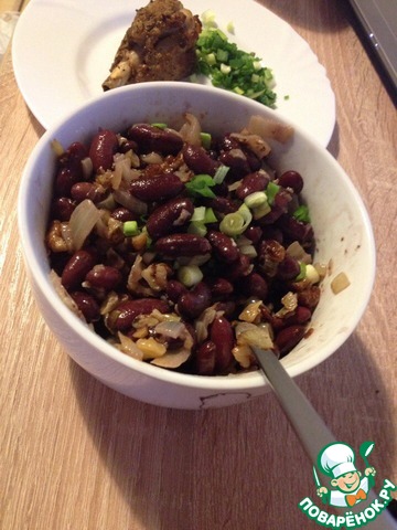 А грецкие орехи — вообще сбалансированный натуральный поливитаминный комплекс. Поэтому сочетание этих продуктов для меня идеально. Ну а жареный лук, хоть и не диетический продукт, придаёт этому блюду необходимую пикантность и дополняет его вкус.