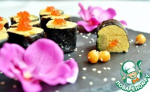 Необычная и вкусная закуска для постящихся и вегетарианцев. Эти роллы делают по традиционному рецепту, с той разницей, что вместо риса здесь используется пюре из нута. Употребляющие рыбу могут разнообразить это блюдо её добавлением.
