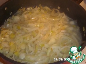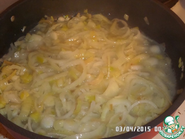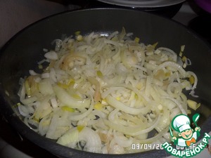 Обжариваем лук 3 минуты и добавляем 1 ст. л. лимонного сока и вино. Готовим еще 2-3 минуты.