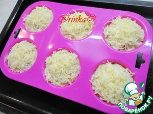 Духовку разогреваем до 180 градусов. Формочки слегка смазываем маслом. Выкладываем в них куриную массу почти до верху, уплотняем ложкой.