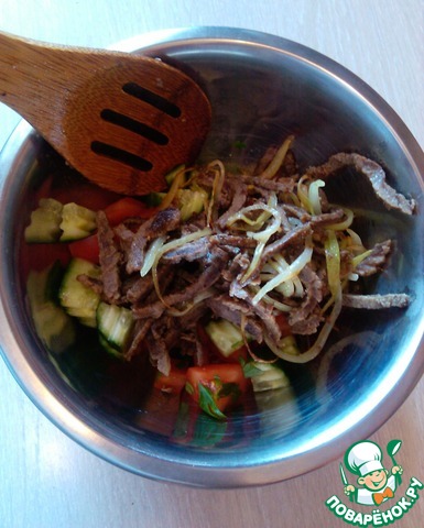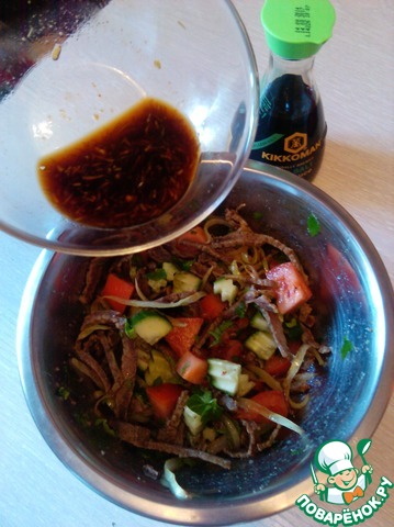 Почему такое название - не знаю. Видимо, потому, что салат из говядины. Пробовала в гостях, понравился очень. Отличное блюдо для легкого ужина!