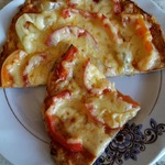 У меня был перец, помидор, грибы, маслины и тертый сыр сверху (лучше брать с наименьшим процентом жирности). Далее снова выпекаем 15 минут.