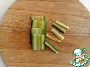 • Вымытый огурец нарезать тонкой соломкой.