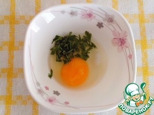 • Яйцо, соль (по вкусу) и мелконарезанную петрушку сложить в мисочку и размешать вилкой.