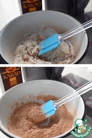 Просеиваем в чашку какао и муку. Перемешиваем.
