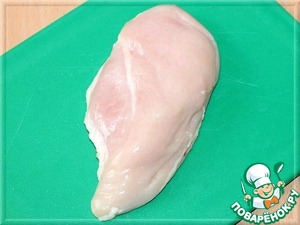 Читайте - Шаг №8 "В сковороде разогреваем 2 ст. л. растительного масла и обжариваем (на сильном огне) грудки с обеих сторон до румяной корочки и перекладываем на тарелку."