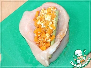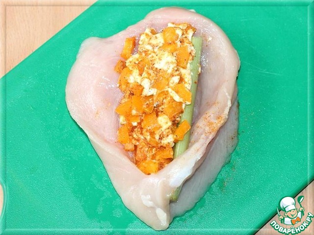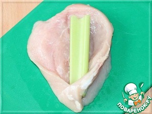 • Кладем в карман каждой грудки по кусочку сельдерея.