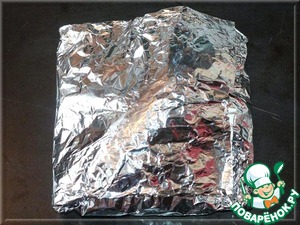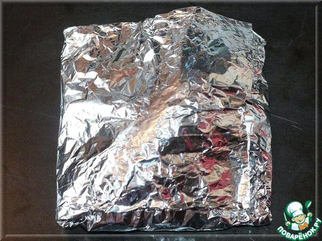 • Запечатываем конверты, кладем на противень и ставим запекаться в духовку на 25 минут. Вот такой конвертик вы можете запекать перед подачей к столу. Это очень удобно, приготовить заранее, а запечь потом.
