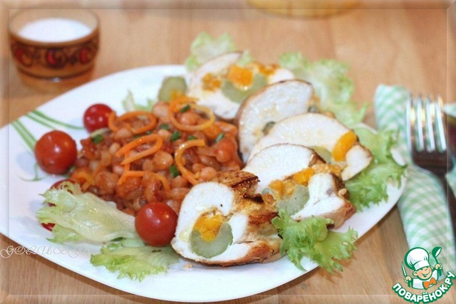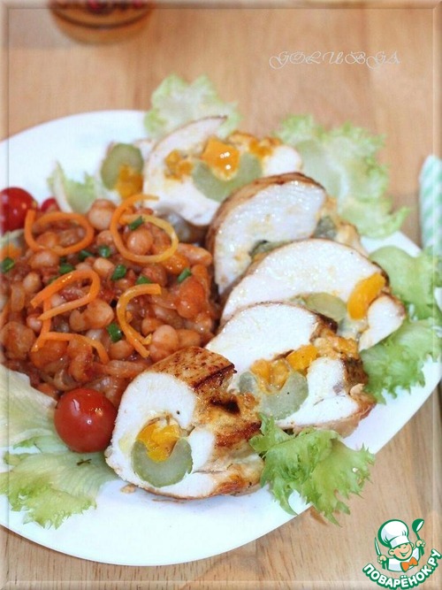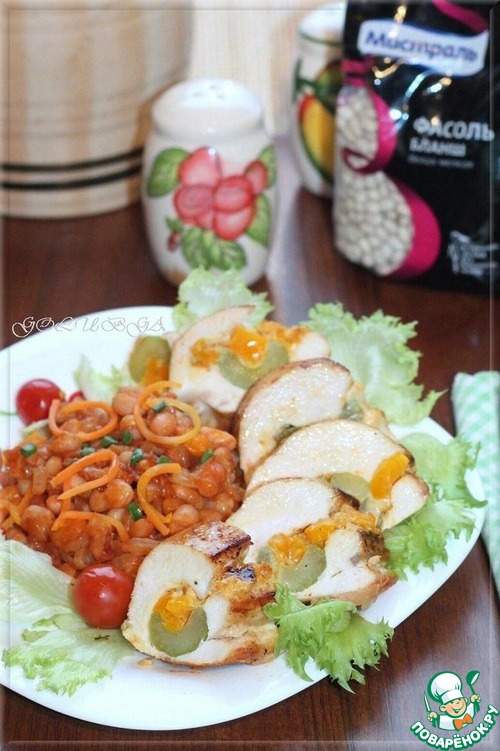 Рецепт «Фаршированная куриная грудка с фасолью»: