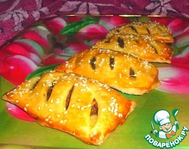 Готовые слойки подаем к ужину, они прекрасно дополняют основные блюда.