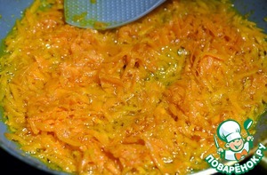 Сделать подливку: морковь почистить и натереть на терке, затем обжарить на подсолнечном масле.