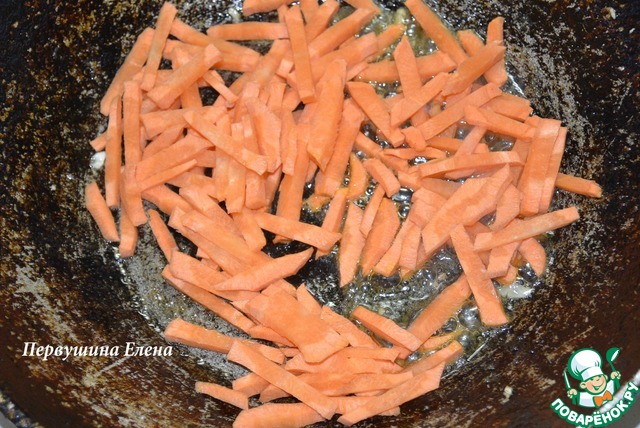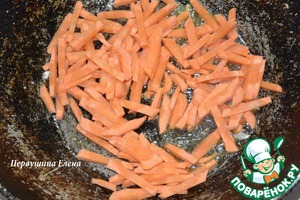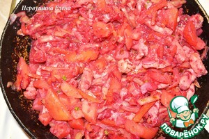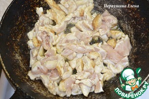 Обжарить мясо на сковороде в раскаленном масле, до румяной корочки. Выложит в отдельную тарелку.