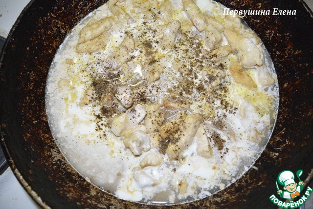 Поперчить. Попробовать на соль. Если нужно, посолить.
