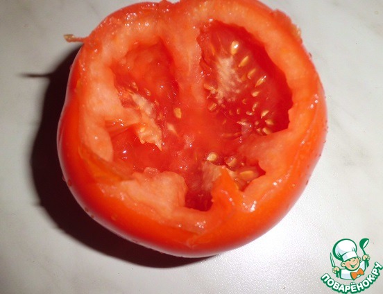 Удаляем сердцевину помидора.