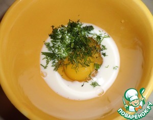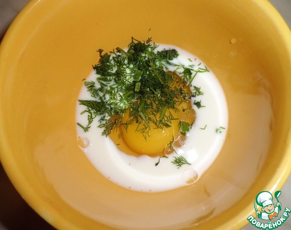 Яйцо взбиваем с 2 ст. л. молока и мелко нарезанной зеленью, солим.