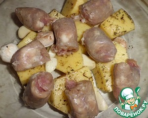 Ингредиенты для «Картофель с колбасками и чесноком»: