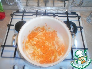• Очистим лук и морковь. Лук нарежем полукольцами, морковь натерем на терке.