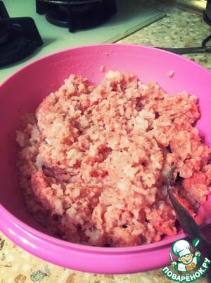 Смешиваем фарш с рисом. Фарш у меня был домашний смешанный свинина/говядина. Тут кому как нравится)