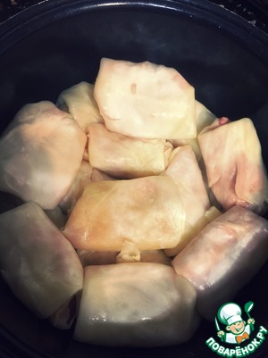 У каждого свой метод подготовки капусты) раньше я пользовалась микроволновкой, сейчас её нет, так что я отвариваю весь кочан в мультиварке.