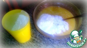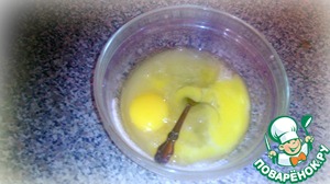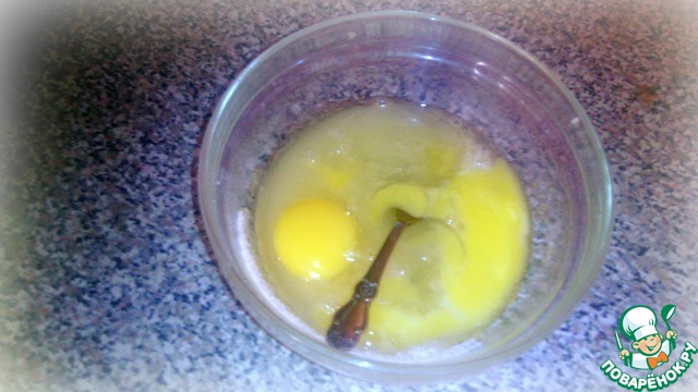 2 яйца + 0,5 ст. сахара + 0,5 ч. л. соды - тщательно перемешать.