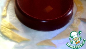 Затем кладём нашу форму поверх теста большей стороной и обрезаем кроя. Обрезанное тесто убираем пока в сторону.