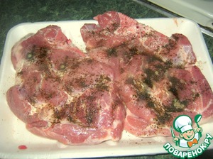 - Свинина (две отбивные на косточки с ошейка) — 750 г