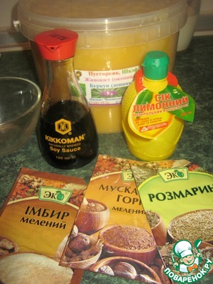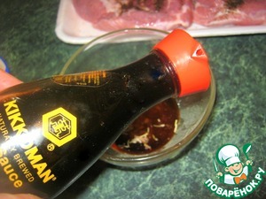 Смешиваем ингредиенты, добавляем соевый соус ТМ "Kikkoman", перемешиваем, натираем мясо