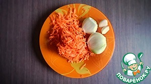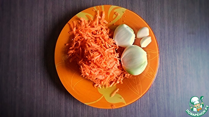 Лук, чеснок и морковь измельчить. Обжарить до золотистого оттенка. Остудить.