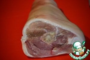 Для начала подготовим рульку, хорошо помоем и поскоблим шкуру