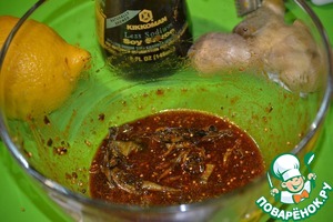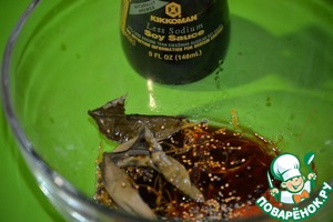 Хорошо перемешиваем маринад, на вкус он должен получиться кисло-сладко соленым, с ярко выраженным вкусом соевого соуса, цедры и имбиря, все остальные специи отдадут свой аромат в процессе маринования.